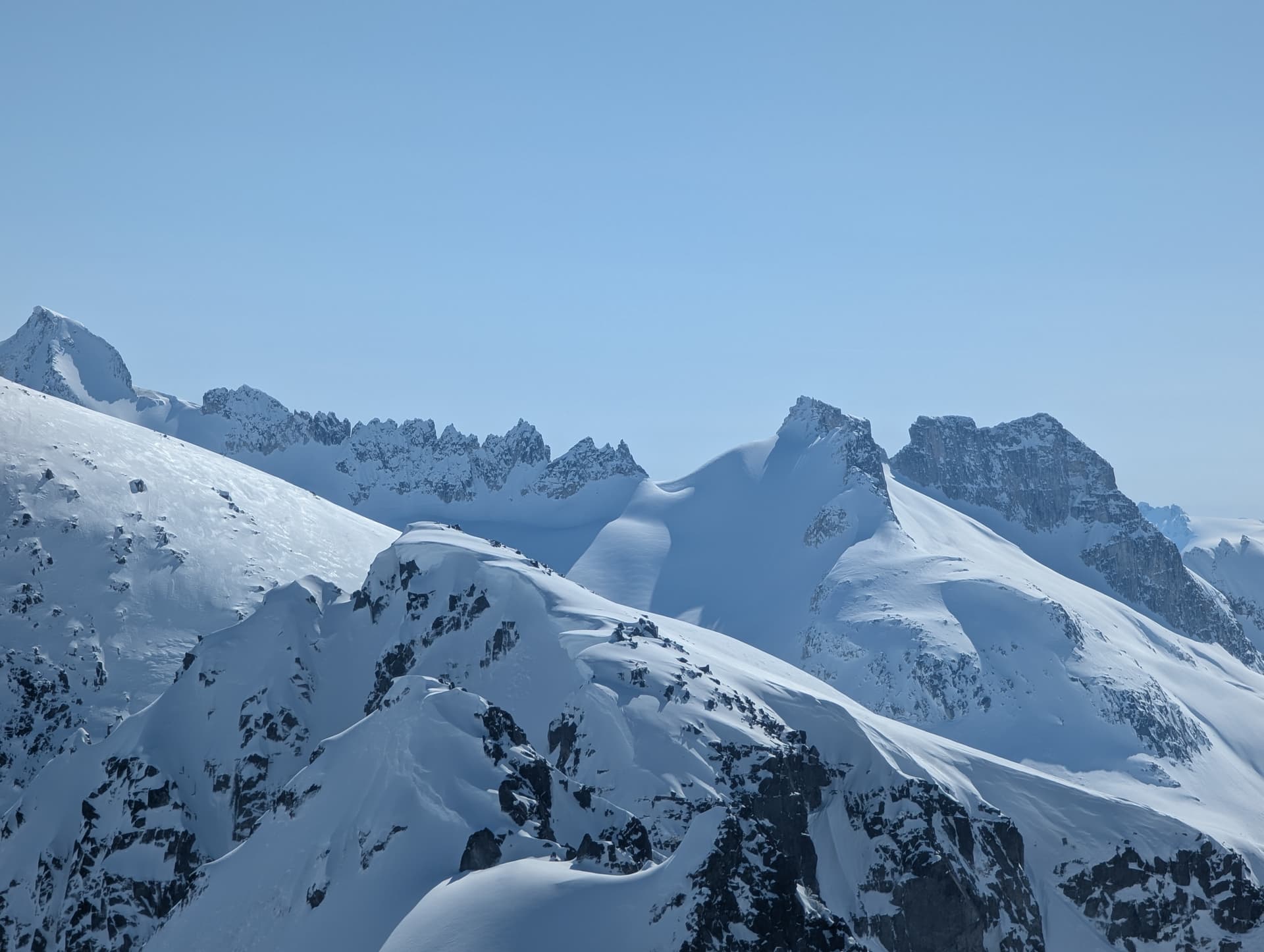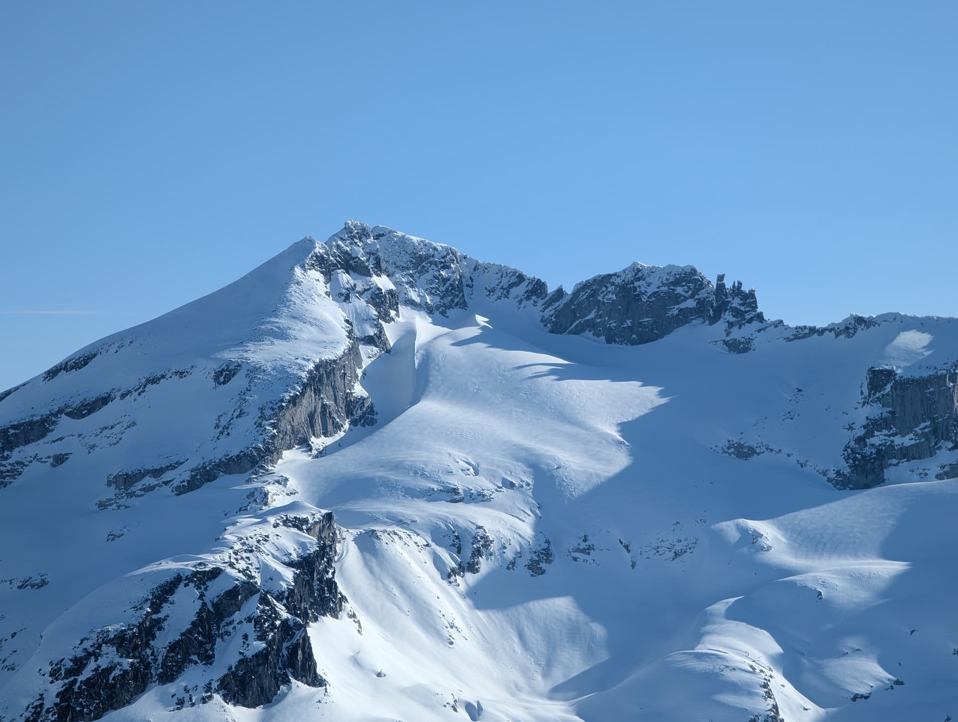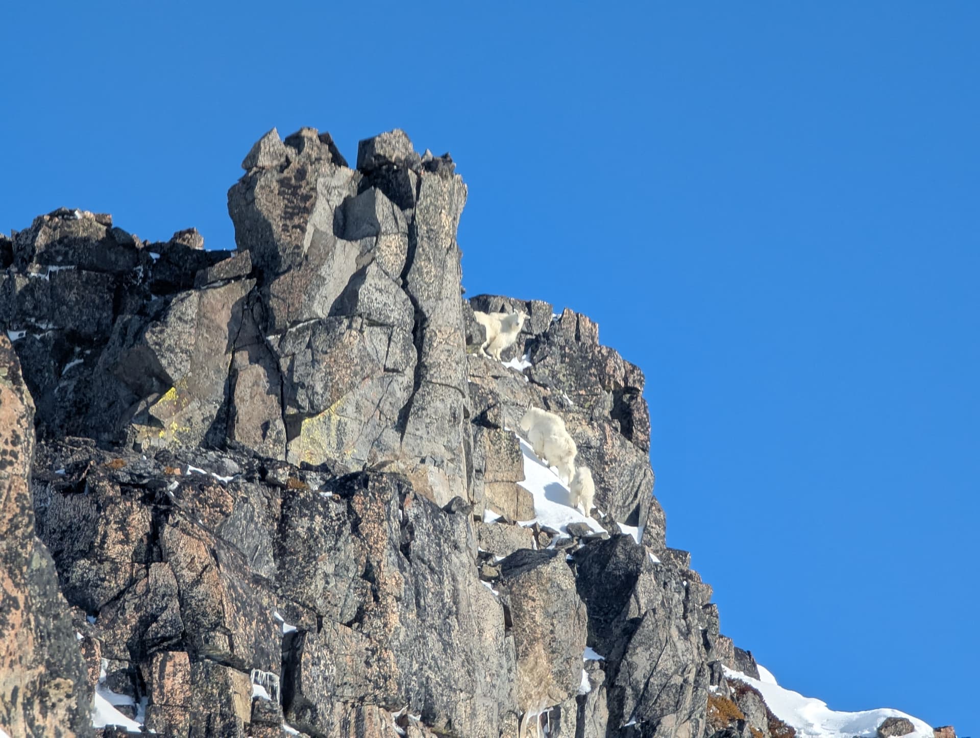 Unfortunately, the goat tracks led off of this summit - we had startled them off. They evidently downclimbed steeper snow then I will ever be able to.