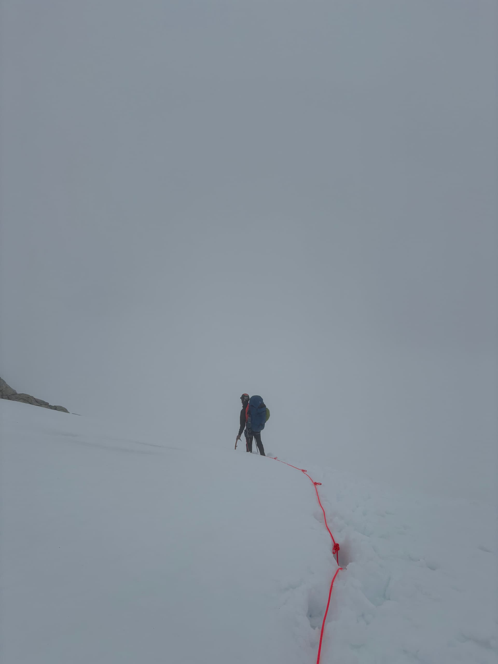 The next morning (day 8), a storm came in an wreaked havoc on our exposed camp site. We quickly got to work building a replica roman coliseum around the tent in the hopes of fending off the driving wind and rain. That night the storm reached a crescendo and we lost several guy-lines to the violent affair. We managed to rebuff the winds with some dyneema slings where there small guylines failed, but no sleep was had. Andrea and I played name games with mountains and countries to distract from the thoughts of a tent fly getting ripped up.
