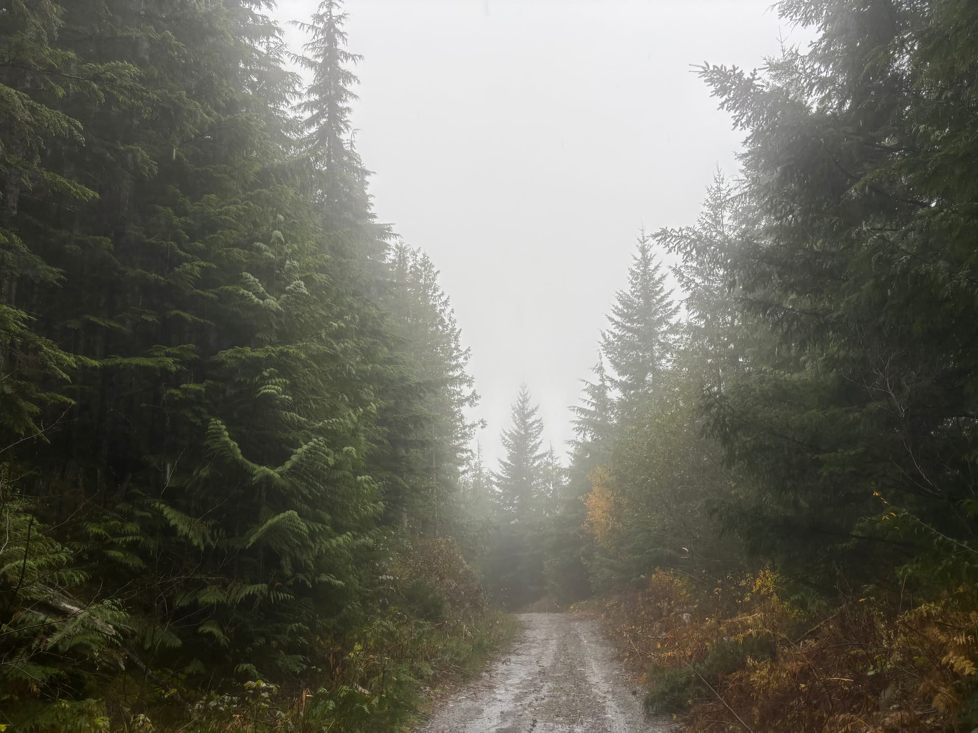On Sunday morning I loaded up the truck and left Vancouver around 9:30am under gray, but uneventful skies. As I rounded the corners of Lions Bay the rain picked up a notch until it was falling in sheets by the time I reached Britannia Beach. I cracked open the weather radar and deep purples and blues formed a swirling mixture on my screen. Well, maybe it will pass. I drove up to the end of Copper Drive and the start of Branch 30. After waiting some 30 minutes, the rain somewhat subsided and I took the opportunity to speed up the road on my bike.