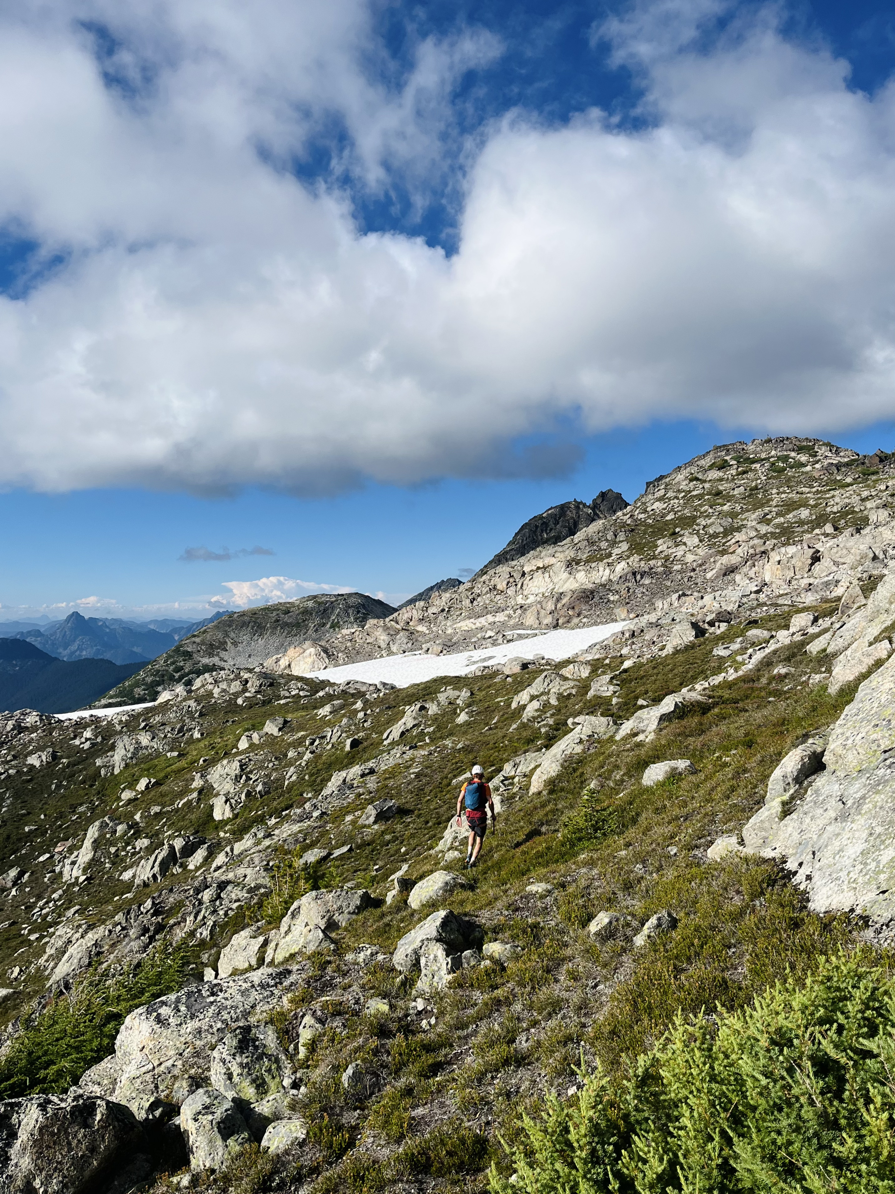 From Rexford South, we put the rope and climbing gear away and started making our way south, happy to be covering ground more efficiently. However, the terrain in this section is not entirely cruisy as there are lots of little bluffs and also sections of dense krumholtz. In general, we stuck to the crest of the ridge, including over Cope North which required some steep bush pulling.